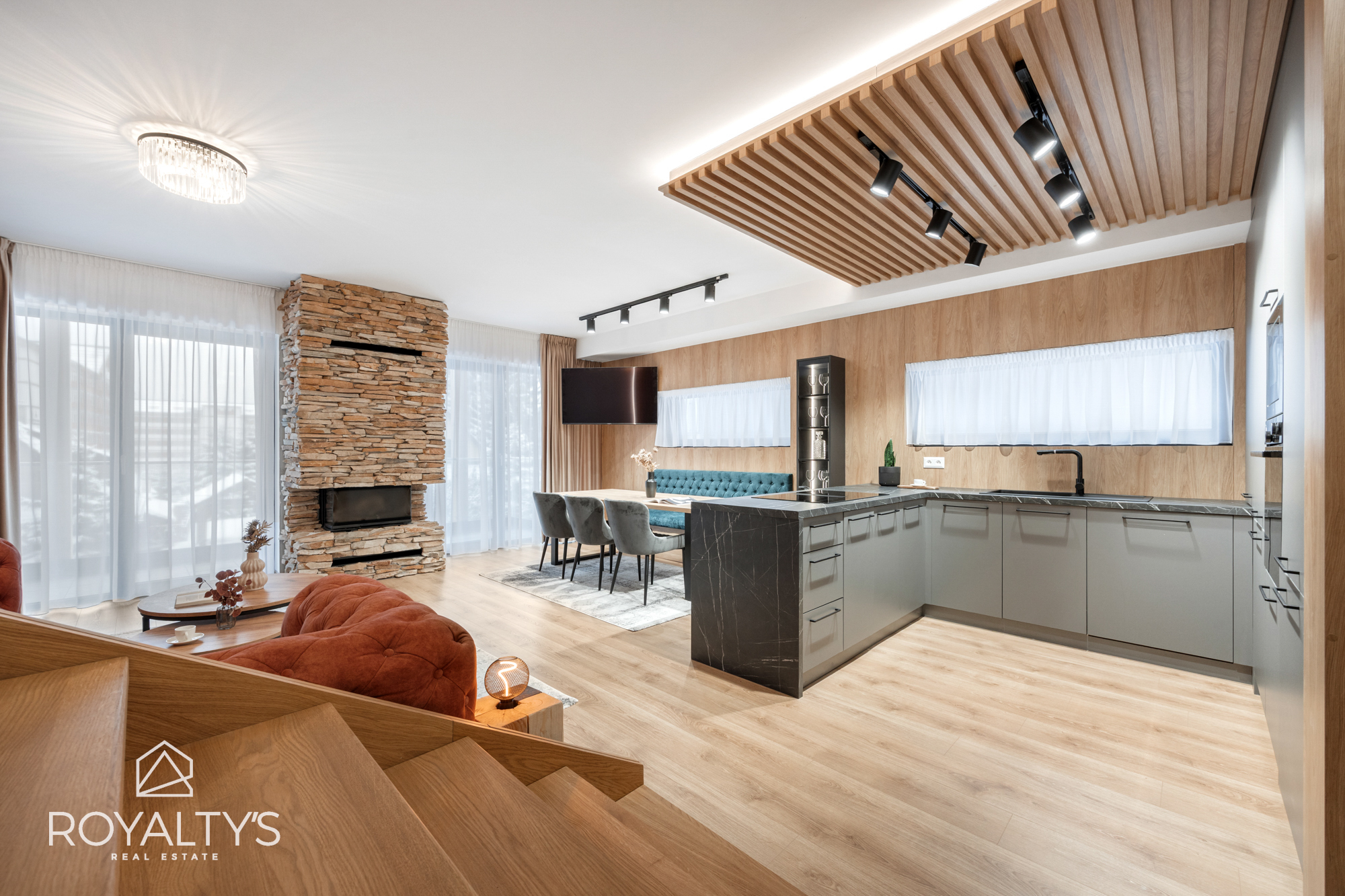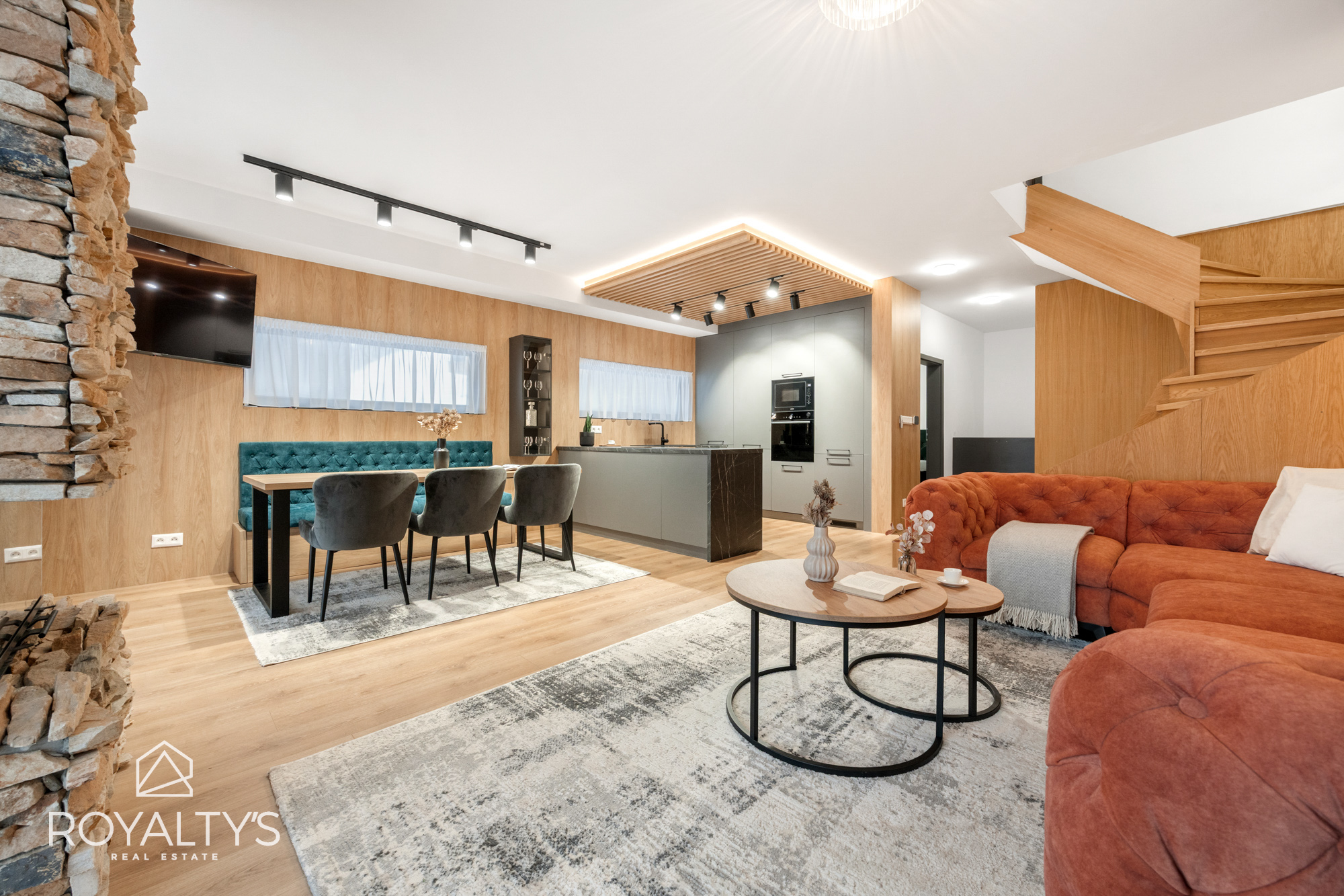ROYALTY´S ponúka na predaj trojpodlažný 5-izbový chalet na pozemku 178 m². Nekompromisná charizma tejto jedinečnej nehnuteľnosti si vás od prvého momentu získa a nepustí. Životný štýl ale aj štandard aký ponúka, by ste hľadali v alternatívnej ponuke len márne. Majiteľ k nej pristupoval so srdcom a emóciou a z každého kúta cítiť nádhernú harmóniu človeka s prírodou. Deti si z tohto miesta odnesú nespočetné množstvo zážitkov a pozitívnej energie z čerstvého vzduchu. Príležitosť oddýchnuť si a spomaliť si tu však nájdu aj dospelí či celé partie. Každú chvíľu objavíte nový výhľad a novú kompozíciu, na ktorú sa budete chcieť vynadívať. Relaxujte pri dobrej knihe v hojdacej sieti, počúvajte vtáky alebo sa poprechádzajte, iba tak. Raňajky na terase s výhľadom na les, obed v prírode či zážitková večera v dobrej spoločnosti je recept nielen na dobrý víkend, ale aj dobrý život. Okolie poskytne okrem zimných aktivít a obľúbeného lyžiarskeho strediska aj mnohé iné atraktívne športové a turistické vyžitie. Obec Donovaly je jednou z najvyhľadávanejších rekreačných lokalít počas celého roka. V pešej dostupnosti ponúka širokú škálu reštaurácií, kaviarní, obchodov, či služieb. Netreba zabudnúť na Banskú Bystricu vzdialenú iba 25 km, ktorá zastúpi všetku občiansku vybavenosť.