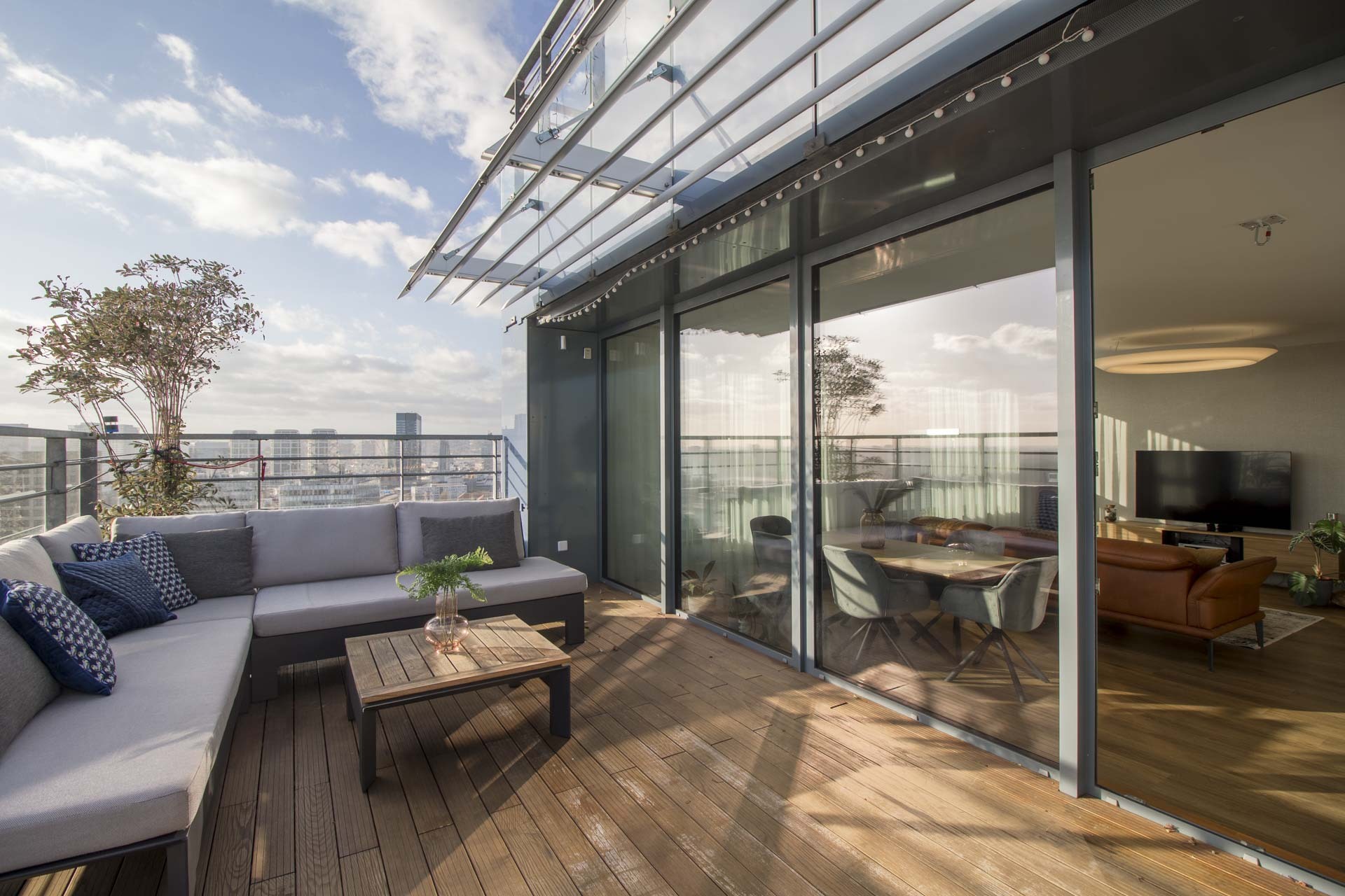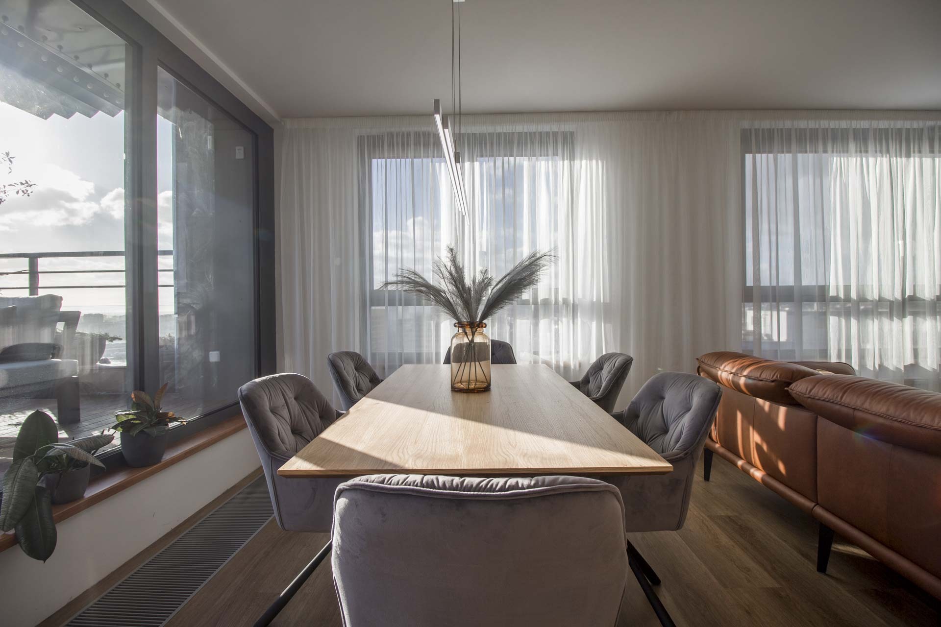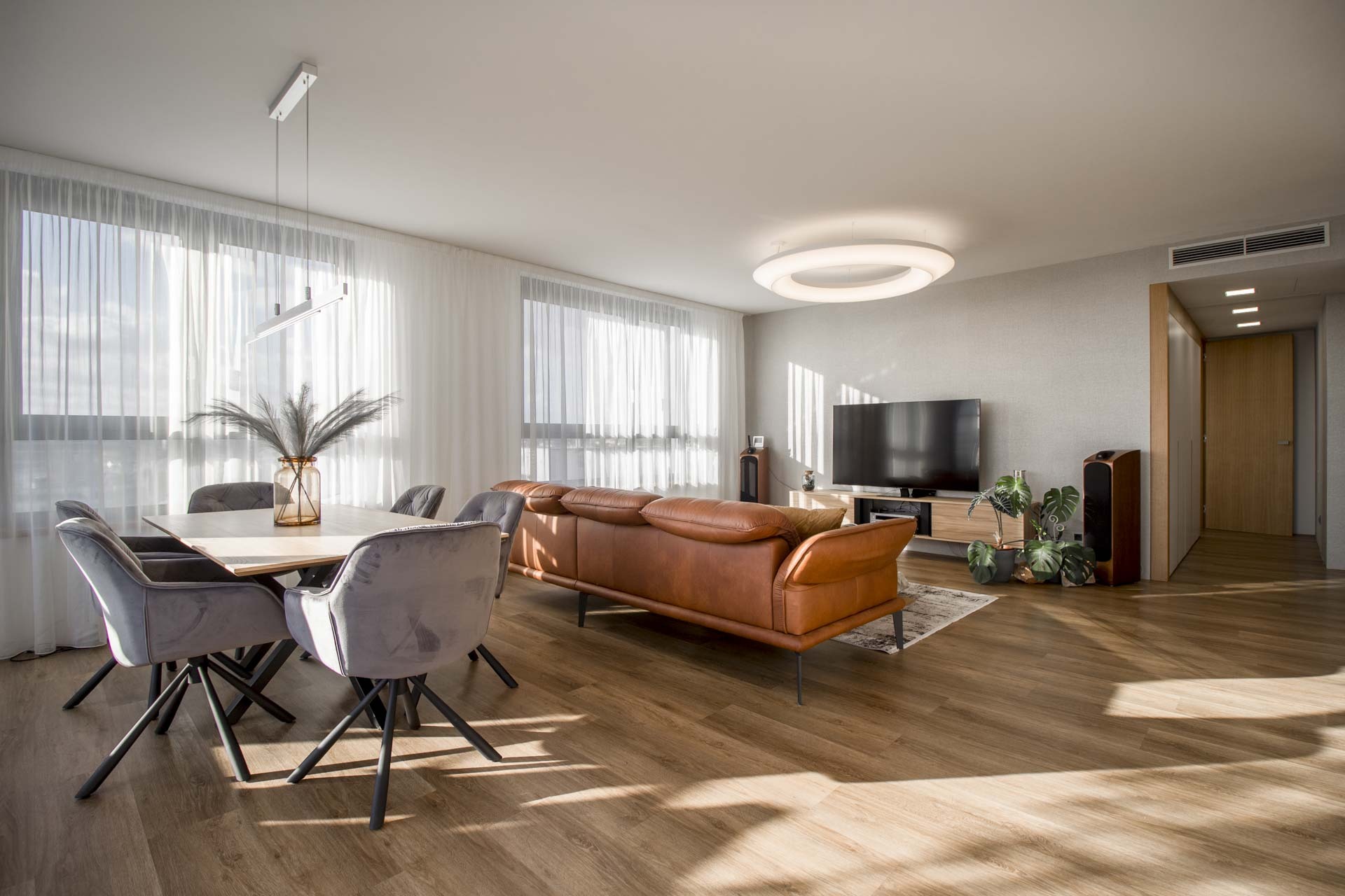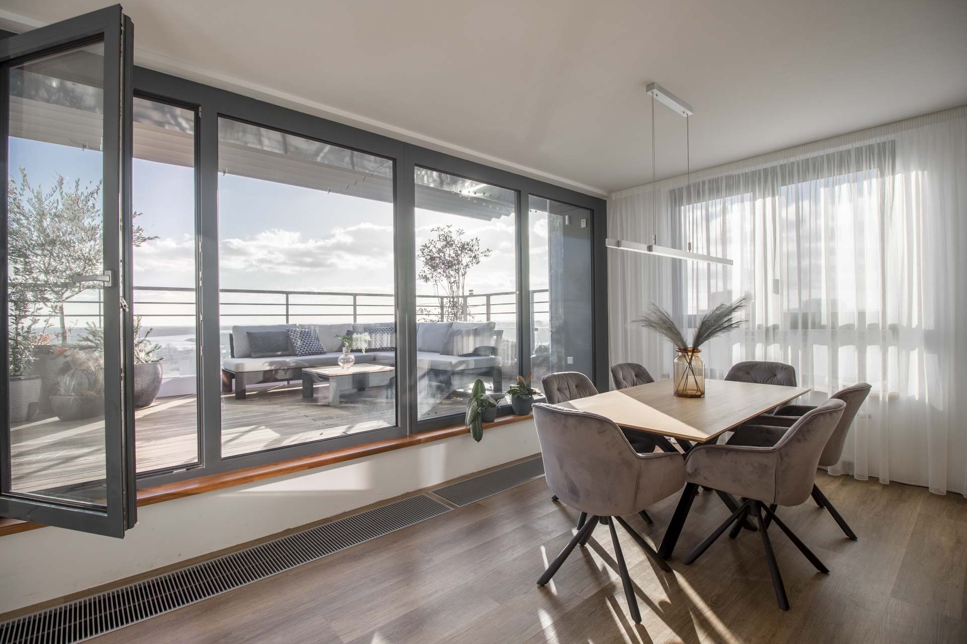 Novostavba pôvodne 4-izbového bytu s veľkorysou rozlohou 90 m² je dispozične orientovaná na juhozápad. Dominantou je vyslovene nádherná priestranná obývacia izba s jedálňou a kuchyňou na mieru, ktoré vás zaručene vytiahnu povečerať na terasu s panoramatickým výhľadom. Kožená polohovateľná sedacia súprava nemeckej značky W. Shillig, king size bed 200 x 200 zn. Hypnose, nábytok na mieru, podsvietené kúpeľne či vaňa z liateho mramoru Roca Ariane. To všetko je len začiatok. Veľmi vkusne zvolené materiály najvyššej kvality puncujú každý kút od kuchyne až po kúpeľňu. To ocení každý, kto si potrpí na luxus a kvalitu. Vzdušný a preslnený dojem zabezpečujú veľkoformátové hliníkové okná. Punc luxusu vyzdvihujú podsvietené podhľady, ktoré v noci prinášajú úplne iný zážitok. Raritné sú svojimi rozmermi aj veľkoformátové obklady a dlažby. Vo vybavení bytu kolaudovaného v 2018 nechýba podlahové kúrenie, klimatizácia, exteriérové žalúzie a systém inteligentnej domácnosti. Zdôraznený je aj detail akým je statika terasy pripravená na osadenie jacuzzi. Na terase 25 m² nájdete okrem pohodlnej exteriérovej sedacej súpravy aj rôzne kvety, bylinky, či stromy ako oliva, citrónovník a figa. Dispozične byt pozostáva zo vstupnej chodby vybavenej šatníkovou skriňou, kúpeľne s toaletou a sprchovým kútom, veľkým presvetleným obývacím priestorom s kuchyňou, jedálňou, oddeleným pracovným kútom a vstupom na slnečnú terasu. Nočnú časť tvorí priestranná spálňa, ktorej súčasťou je vysunutá kúpeľňa s dizajnovou podsvietenou mramorovou vaňou a umývadlom. Netreba zabudnúť na rozľahlý walk-in šatník pozostávajúci zo 14-tich skríň a komody. Nehnuteľnosť je určená pre náročného klienta, ktorému ponúkne výbornú dostupnosť a výnimočné prvky.